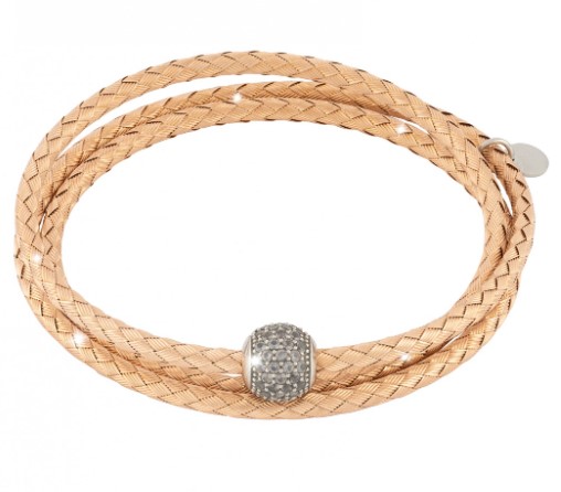 Pulsera de bronce enchapada en oro blanco con cristales blancos y colgante de olivo.