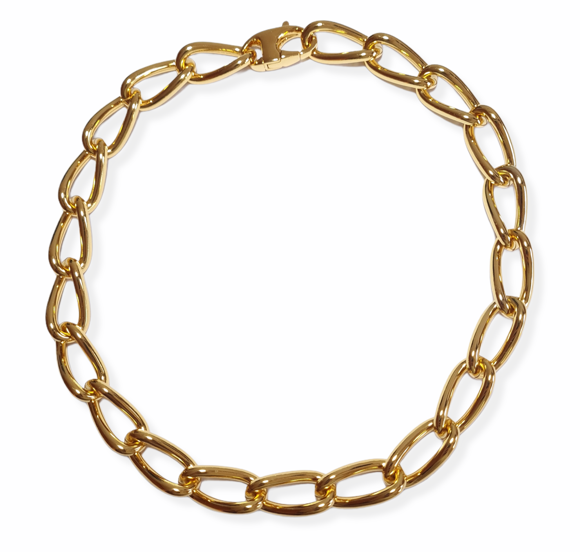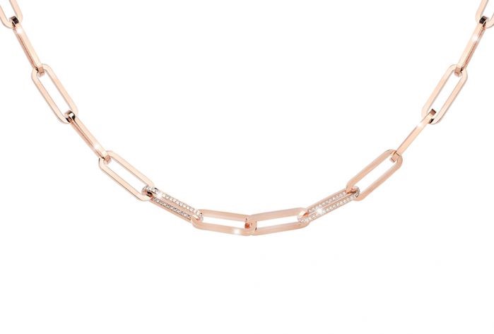 Collar de bronce enchapado en oro blanco, con eslabones modelo diamante. Longitud de 48 cm.